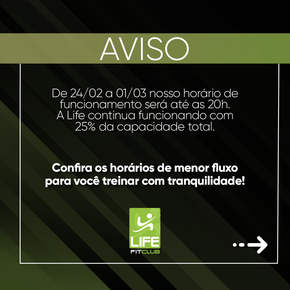 De 24/02 a 01/03 nosso horário de funcionamento será até às 20h. A Life continua funcionando com...