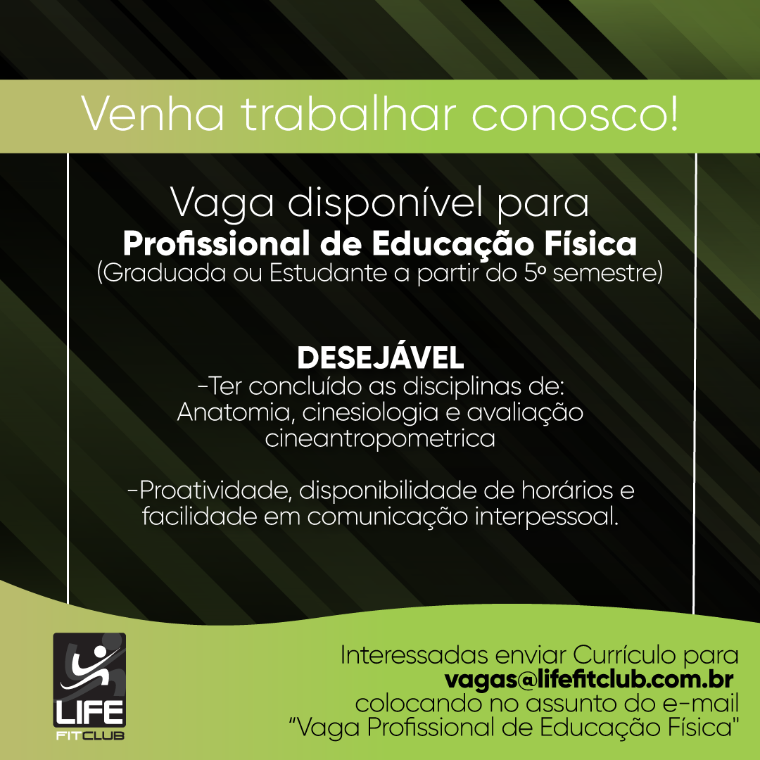 Quem tiver interesse, enviar o curri?culo para vagas@lifefitclub.com.br ??